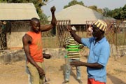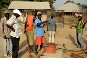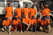 Na Guiné-Bissau tal como em Portugal o trabalho é feito por voluntários. Este grupo veste camisolas de voluntários doadas pelo Montepio Geral, para os voluntários da Ajuda Amiga.