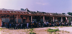 A rápida deterioração da escola foi devido aos fortes ventos que arrancaram as chapas de zinco que cobriam o telhado da escola, deixando o mobiliário a deteriorar-se ao sol e à chuva.