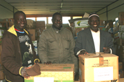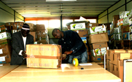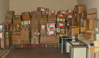 centenas de caixas prontas a seguirem para a Guiné-Bissau |